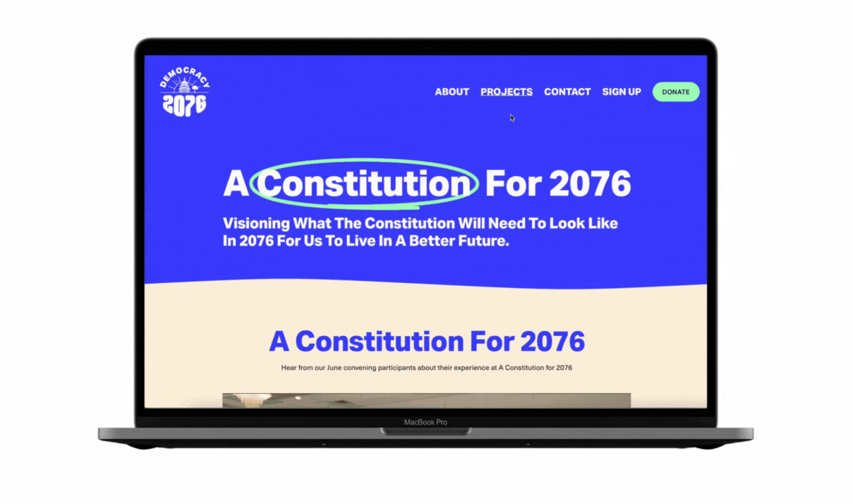 In 2022 when Democracy 2076 was first forming, they approached me to design their logo and branding for them. They wanted the brand to reflect a future-forward vision and the hard work and varied strategies that drive long-term planning for our democracy.